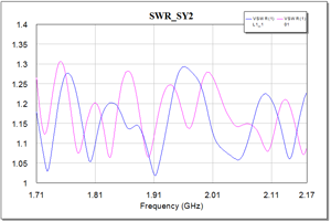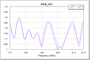 如圖2所示,為振動試驗前后天線電壓駐波比性能穩定性比較,左圖的天線在振動試驗前后駐波比基本沒有變化曲線吻合很好,而右圖的天線在振動試驗后雖然駐波比仍然合格(VSWR<1.5),但試驗前后駐波比曲線偏差較大,可以認為該天線穩定性較差。